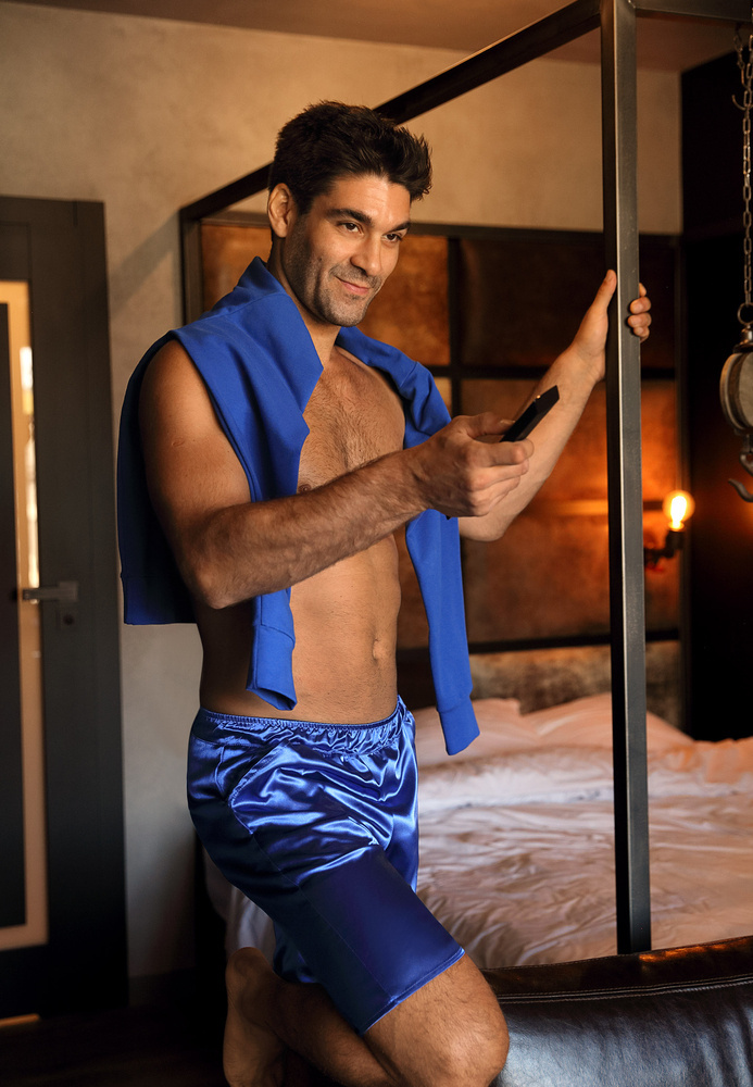 Spodenki męskie wykonane z przyjemnej w dotyku tkaniny. Satyna to materiał, który kojarzy się luksusem, teraz dostępny dla każdego.