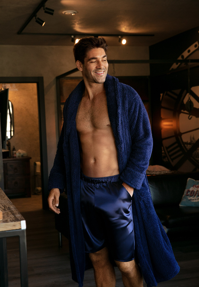Spodenki męskie wykonane z przyjemnej w dotyku tkaniny. Satyna to materiał, który kojarzy się luksusem, teraz dostępny dla każdego.