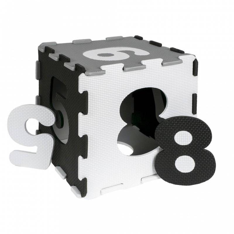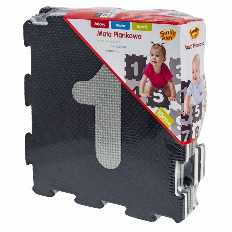 Trójkolorowa mata piankowa zwierzęta - czerń,biel i szarość . Może być używana jako dywanik- podkładka na podłogę oraz jako puzzle do układania. Zrobiona z miękkiej pianki, przyjemnej w dotyku. Może też posłużyć jako podkładka przy innych zabawach czy drzemce. Zabawka uczy: spostrzegawczości, rozpoznawania kolorów i kształtów, budowania figur przestrzennych, zabawy z wyobraźnią.