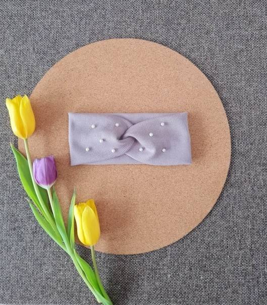 Opaska wykonana z miękkiej, bawełnianej dzianiny. Model ozdobiony perełkami. Jest doskonałym i bardzo modnym dodatkiem do wszelkich stylizacji. Dopasuje się do każdego kształtu głowy oraz podtrzymuje włosy.