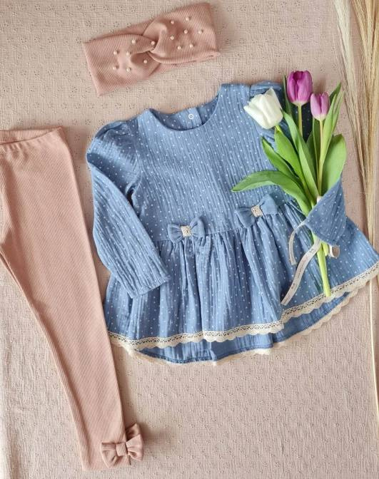Zapytaj o produktUrocza tunika z kolekcji Sophie. Posiada dwie kokardki z przodu oraz piękna koronka na dole spódniczki. Wykonana z miękkiej i wygodnej bawełny 100% typu muślin. Zapinana jest na antyalergiczne napki co ułatwia ubieranie.