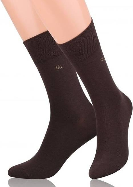 art.056 Skarpety męskie klasyczne garniturowe Steven brązowy kwadraty 005