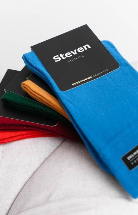 art.056 Skarpety męskie garniturowe gładkie Steven niebieski 092