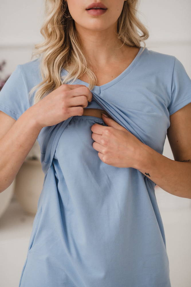 Night & Day Koszula nocna ciążowa i do karmienia krótki rękaw Milk&Love błękitny