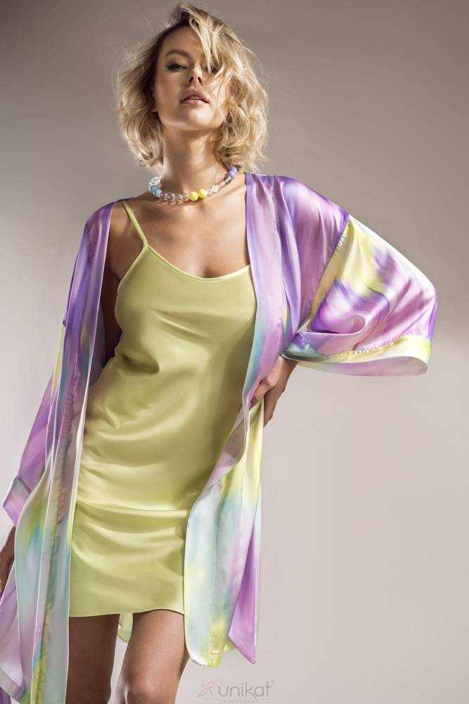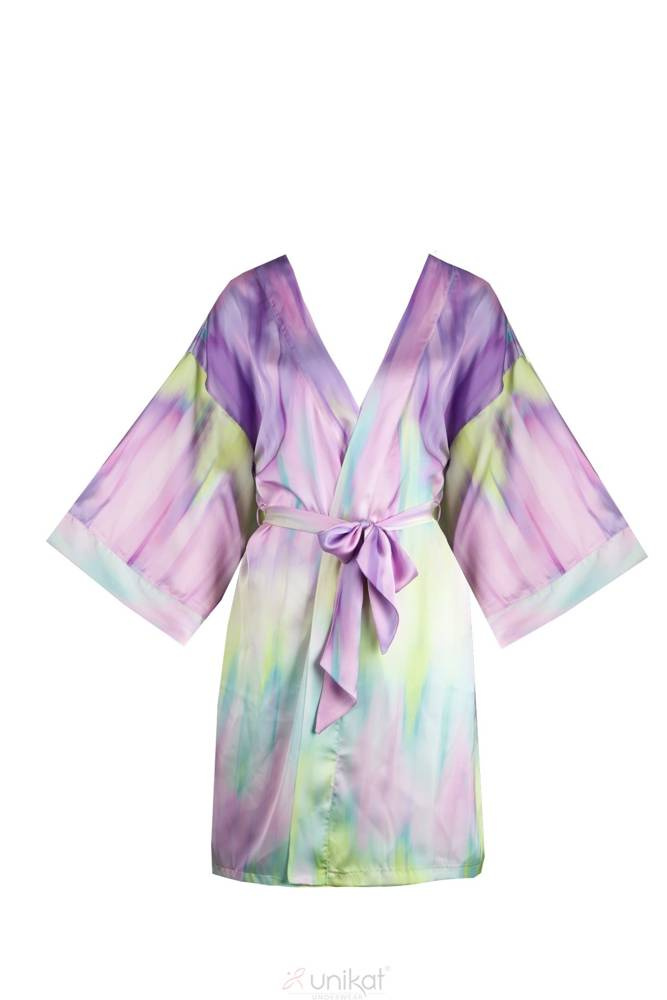 Wzorzysty szlafrok Limetta będzie idealny na przyjemne rozpoczęcie wieczoru we dwoje lub stylowy początek dnia. Rękawy nie krępują ruchów i zapewniają wygodę. Kolorystyka i wzornictwo, to połączenie dla pań, które cenią sobie subtelną kobiecość.
