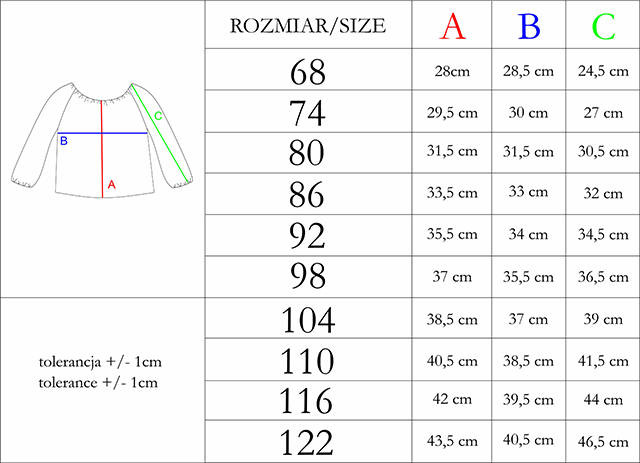 Bluzka dla dziewczynki typu hiszpanka. Idealna na wiosnę i lato. Model można dowolnie łączyć z innymi ubrankami z kolekcji Tukan, tworząc unikatowe, letnie stylizacje.
