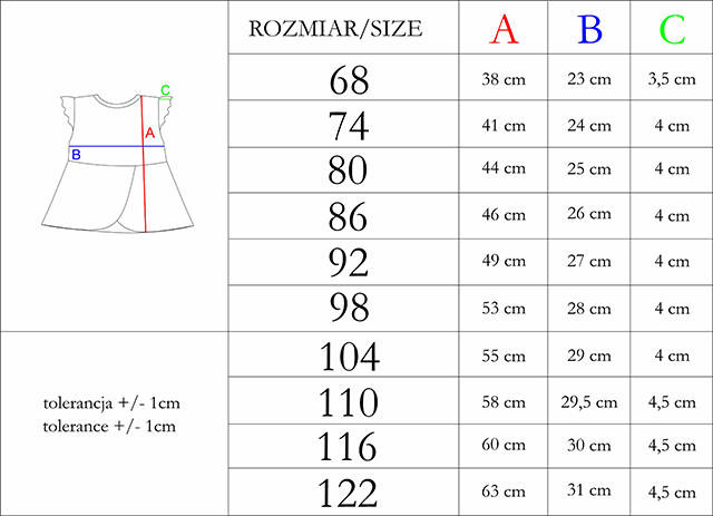 Dziewczęca sukienka z wysokiej jakości bawełny. Ozdobiona kokardką w pasie. Luźny fason nie krępuje ruchów. Sukienka zapinana jest na plecach, co znacznie ułatwia ubieranie i rozbieranie maluszka. Zatrzaski wykonano z antyalergicznego, bezpiecznego tworzywa bez dodatku niklu. Doskonałym uzupełnieniem dla sukienki będzie opaska z kolekcji Tukan.