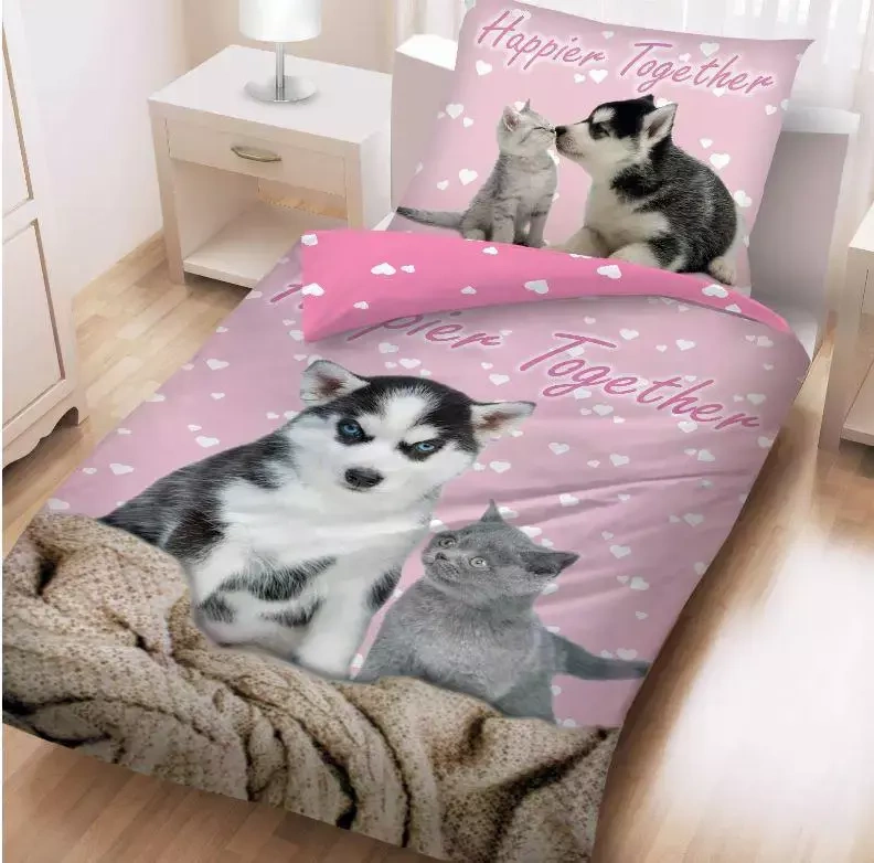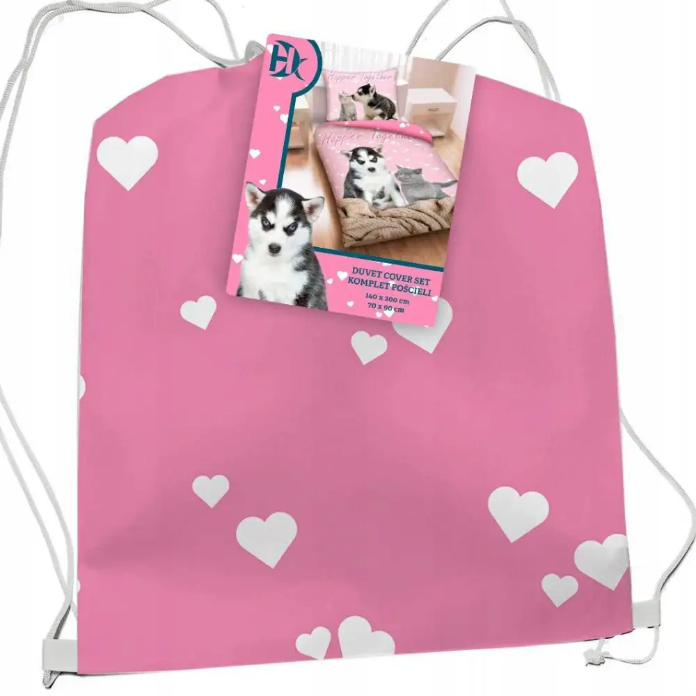 CD-0037BL Pies i Kot Pościel + worek Halantex różowy
