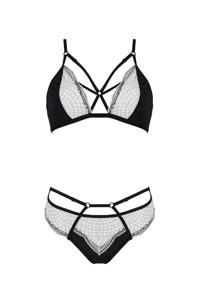 Czarna delikatna satyna, urocza biała koronka i seksowne okalające ciało paski? To wyjątkowo zmysłowe i seksowne połączenie, które pozwoli Ci poczuć się niezwykle kobieco.