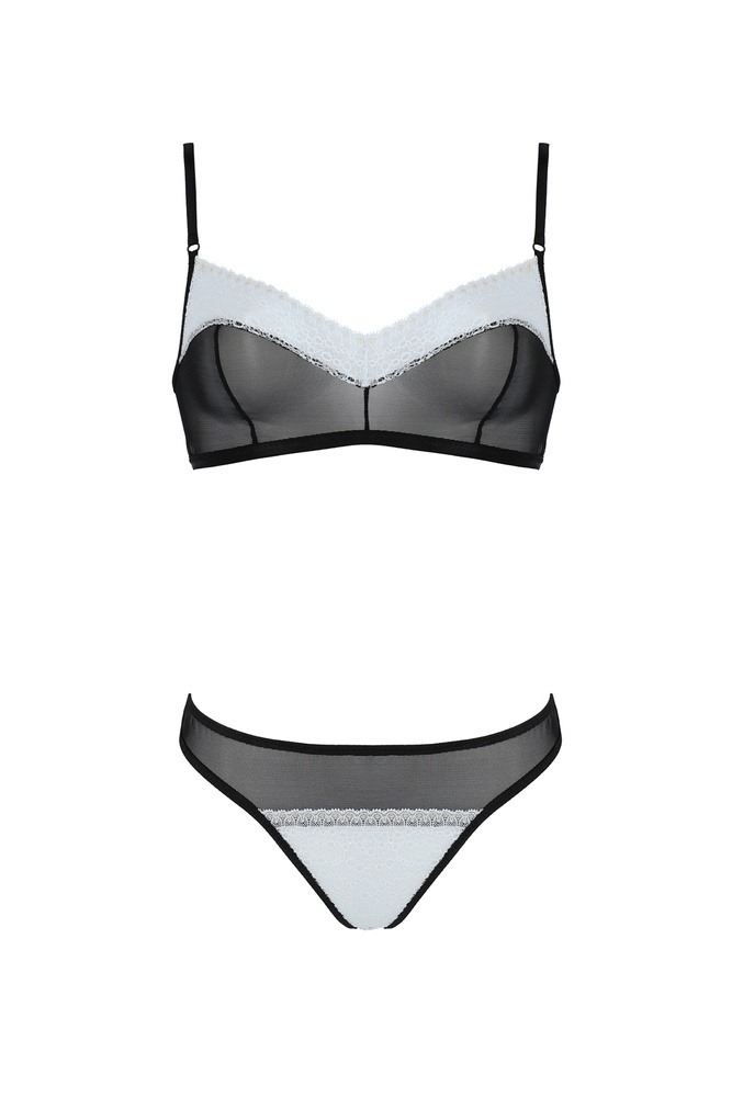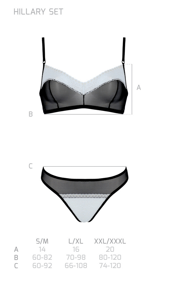 Klasyczne, ponadczasowe zestawienie czerni i bieli. Delikatna koronka oraz prześwitujący tiul. Wygodny krój a zarazem ponętny. Wszystkie te cechy zawarte w jednym komplecie tworzą wyjątkowy zestaw Hillary.