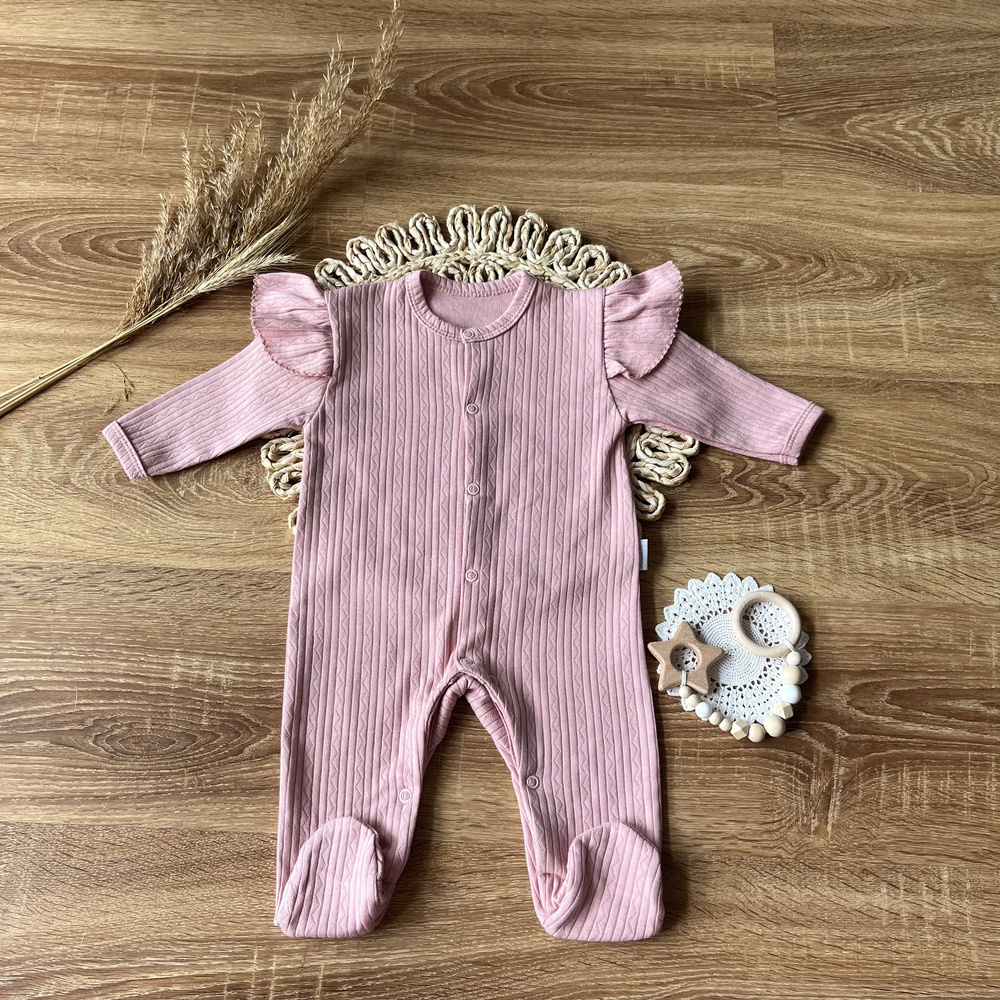 Pajacyk zaprojektowany z myślą o najmłodszych, którzy cenią sobie komfort i wygodę. Pajacyk wykonany jest z wysokiej jakości bawełny organicznej. Ramionka zdobią urocze falbanki.