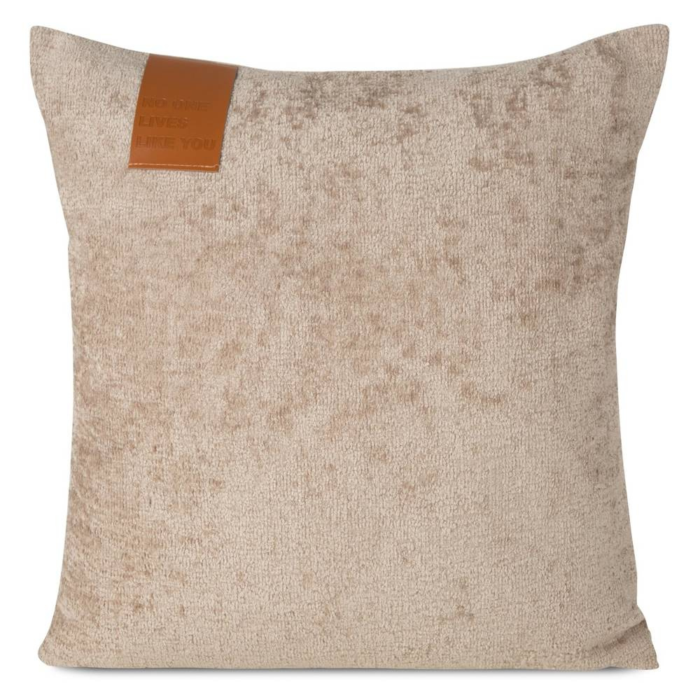Poszewka z miękkiej szenilowej tkaniny ze skórzaną wstawką Eurofirany beżowy