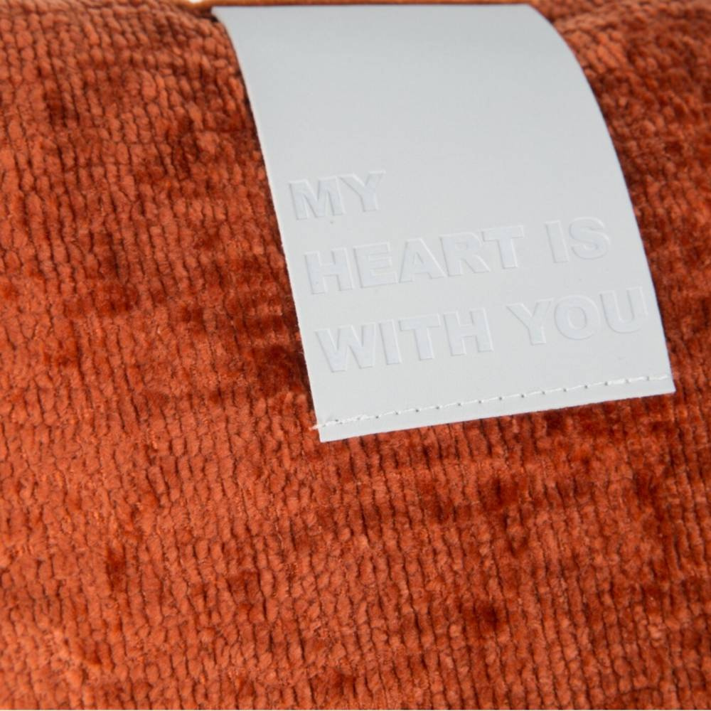 Poszewka z miękkiej szenilowej tkaniny ze skórzaną wstawką Eurofirany ceglasty