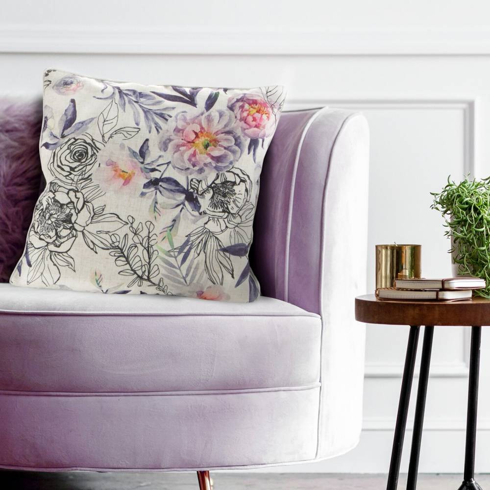 Poszewka jest niezwykle oryginalna i efektowna. Modna tkanina, z której wykonano poszewkę jest mieszanką lnu, bawełny i poliestru, a jej wierzch zdobi kwiatowy nadruk. Przyjemna w dotyku i pozwala znakomicie się zrelaksować podczas wypoczynku na kanapie.