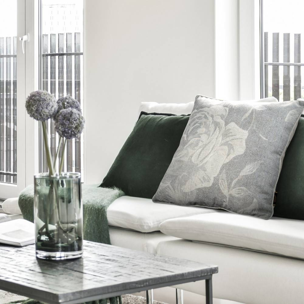 Poszewka jest niezwykle oryginalna i efektowna. Modna tkanina, z której wykonano poszewkę jest mieszanką lnu, bawełny i poliestru, a jej wierzch zdobi kwiatowy nadruk. Przyjemna w dotyku i pozwala znakomicie się zrelaksować podczas wypoczynku na kanapie.