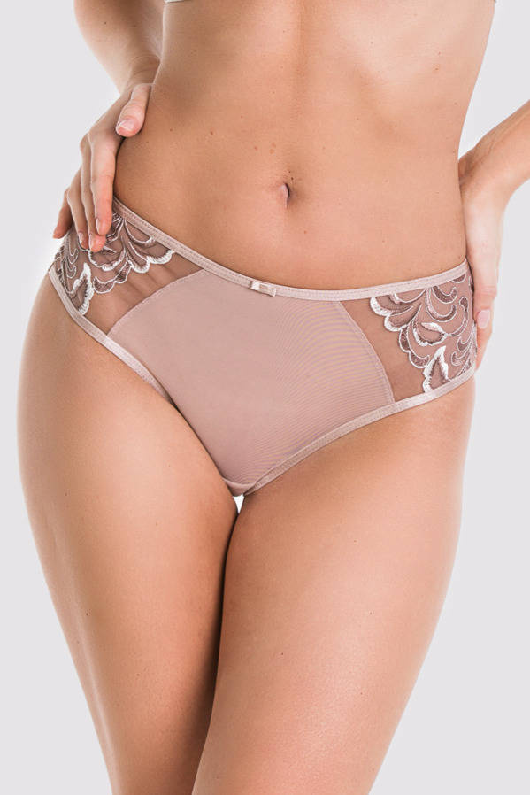 Figi damskie GFP 1058 Sonia Gaia – eleganckie, zabudowane, z delikatnej siateczki i prążkowanego materiału, komfortowe, z kokardką