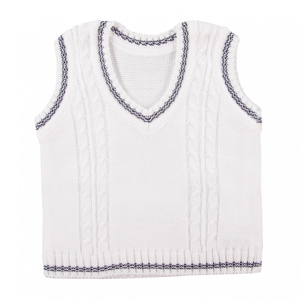 Kamizelka dla chłopca uszyta z miękkiej dzianiny, to modny element garderoby każdego malucha. Luźny fason nie krępuje ruchów dziecka i zapewnia mu komfort podczas zabawy oraz codziennych aktywności.