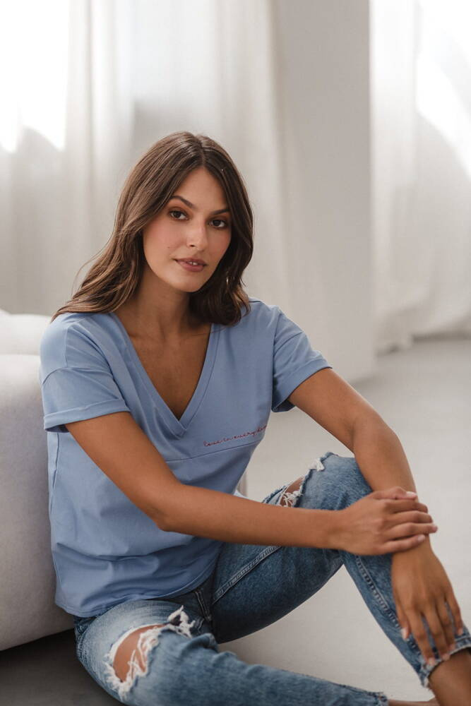 M-Shirt Bluzka ciążowa i do karmienia V-neck Milk&Love błękitny