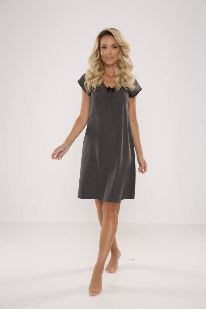 Niezwykle komfortowa i przy tym urocza koszula. Delikatna wiskoza nadaje jej wyjątkowego uroku. Model z krótkim rękawem. Na wysokości biustu kokardka.