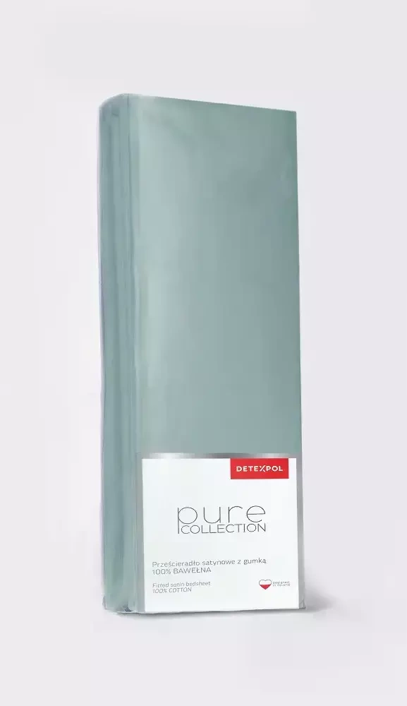 Pure prześcieradło satynowe z gumką jednobarwne Detexpol miętowy
