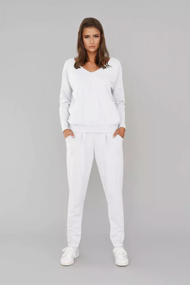 Karina Komplet Damski długi rękaw, spodnie Italian Fashion - biały