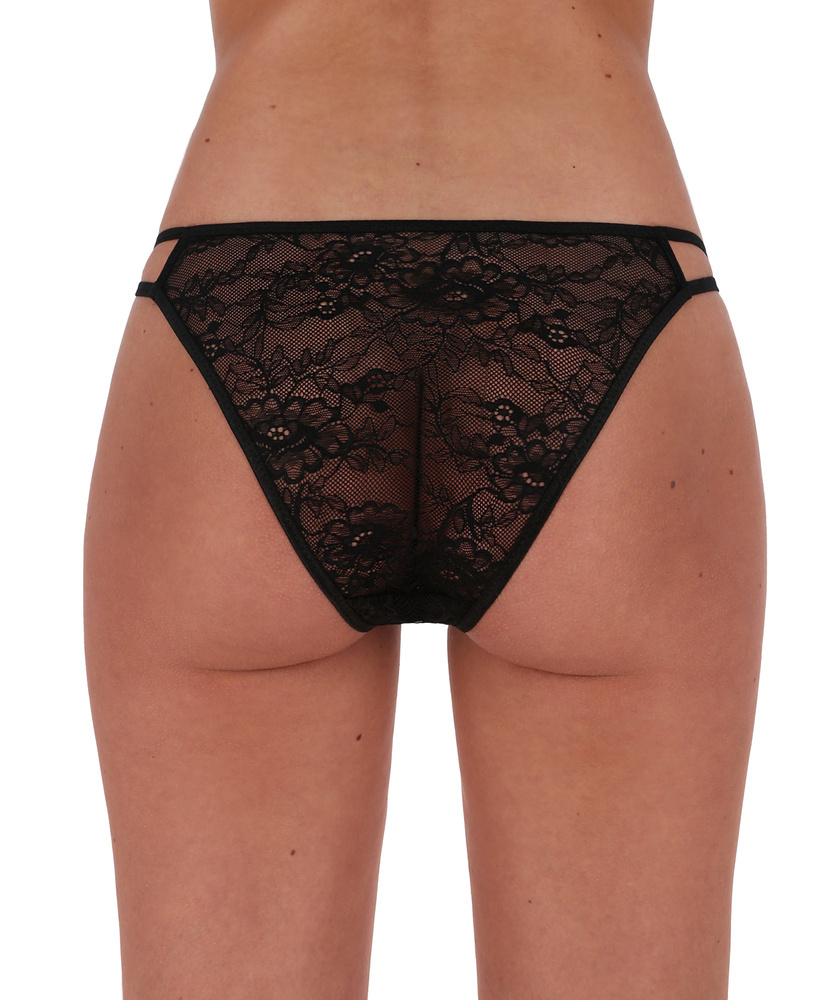 Figi damskie z efektownej, prześwitującej koronki.