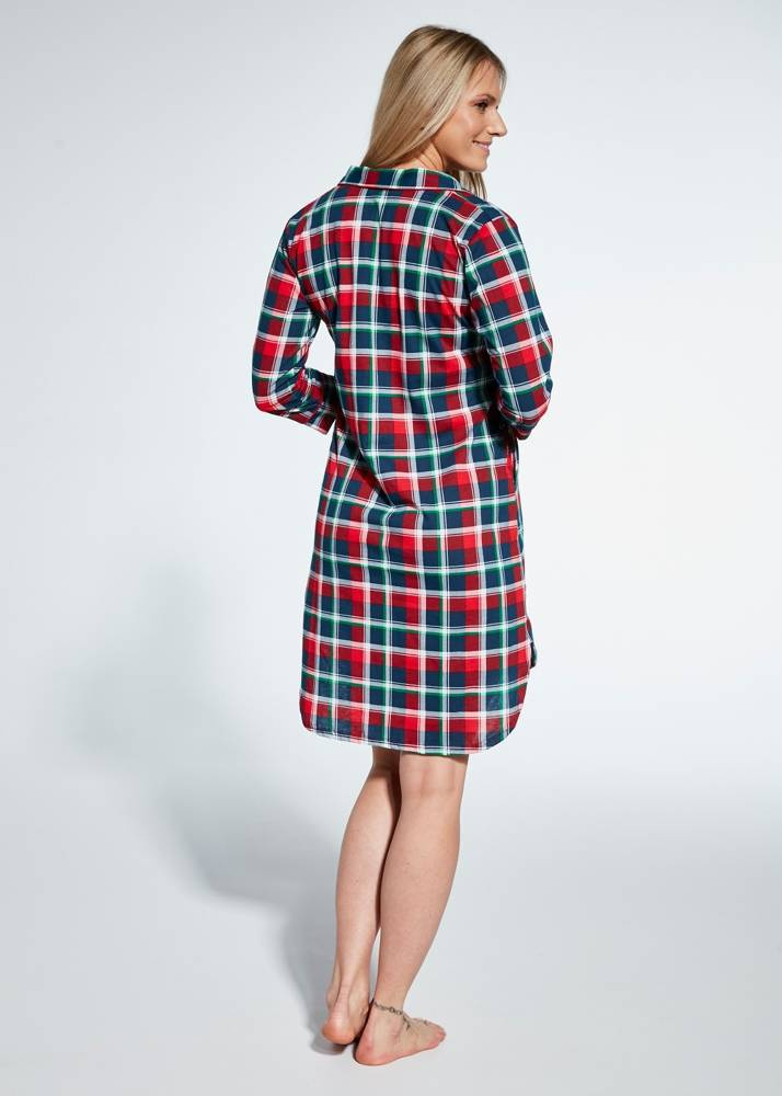 Koszula nocna z długim rękawem uszyta z wysokiej jakości, wzorzystej bawełny. Długość przed kolano.