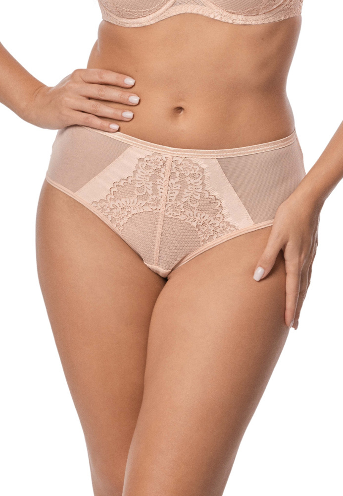 Pełne figi  wykonane z delikatnego tiulu oraz efektownej koronki, zapewniają komfort użytkowania oraz modelują sylwetkę.