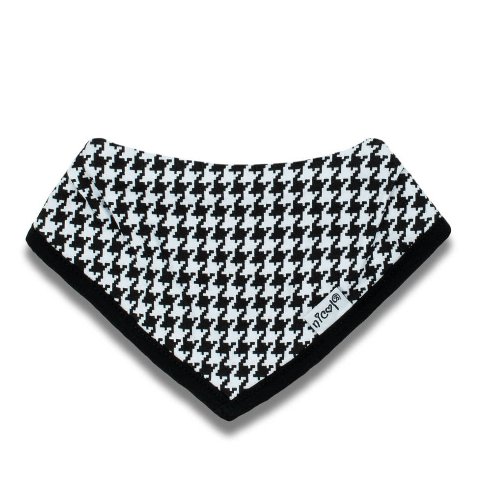 Apaszka z wysokogatunkowej bawełny. Zapinana na bezniklowe napy. Modny i ponadczasowy wzór pepitka, druga strona czarna. Może pełnić funkcję okrycia szyji dziecka, jak również pomocna będzie przy ząbkowaniu. Materiał całkowicie bezpieczny dla skóry dziecka.