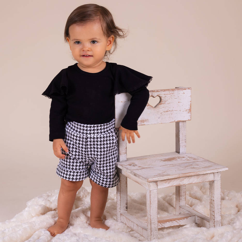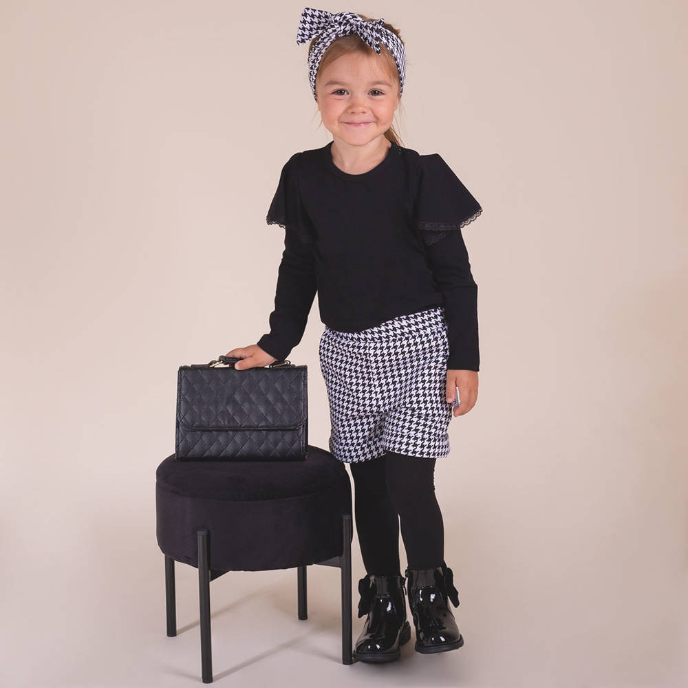 Zapytaj o produktPonadczasowa bluzka dla dziewczynki na długi rękaw. Uszyta z czarnej bawełny, z dodatkiem elastanu. Na ramionach ozdobiona falbankami tzw. Motylek wykończony koronką. Pasuje do stylizacji z kolekcji Viki i nie tylko. Materiał posiada certyfikat Oeko-Tex Standard 100 Tekstylia godne zaufania.