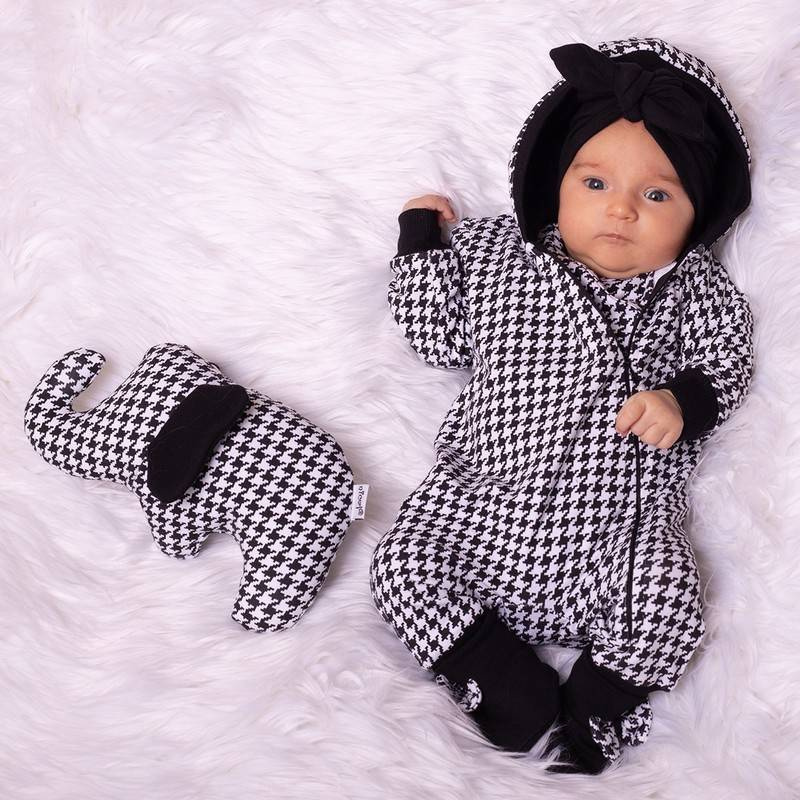 Zapytaj o produktPajac dresowy w modny wzór pepitka z dodatkiem elastanu. Idealny na spacery. Posiada czarne ściągacze w rękawach, przy nogawkach oraz przy kapturze. Wnętrze kaptura, również w kolorze czarnym. Dzięki wykonaniu z certyfikowanej bawełny dziecko będzie w nim się czuło wygodnie.