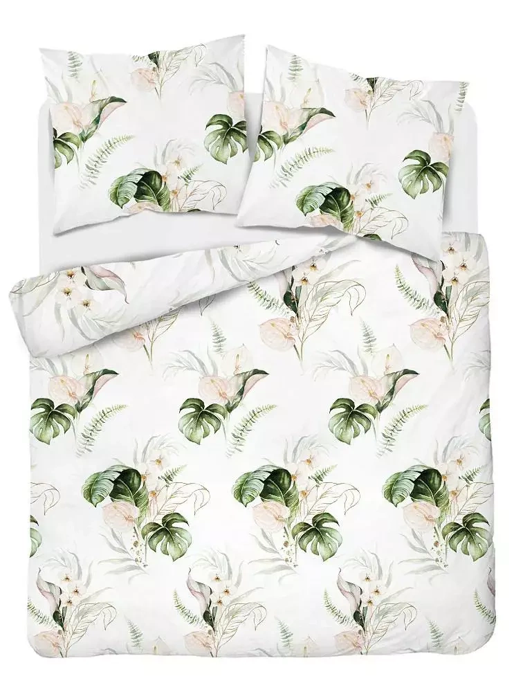 4452 A Home Satin Pościel satynowa liście monstery Detexpol zielony