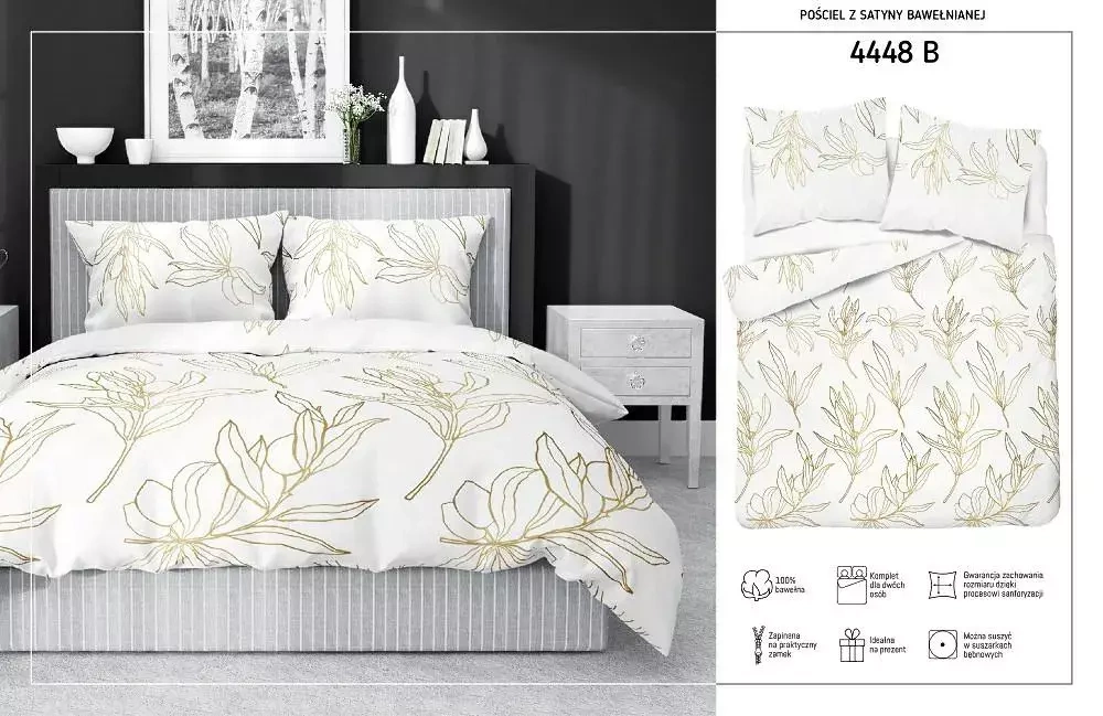 4448 B Home Satin Pościel satynowa liście Detexpol biały