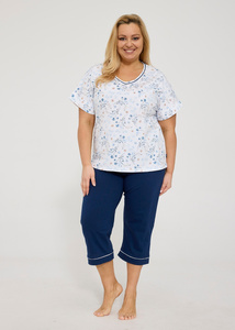 Cornette Gianna 876/346 piżama damska bawełniana kwiaty spodnie 7/8