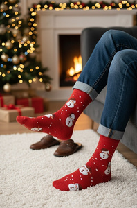 SKCH01 Skarpety świąteczne Be Snazzy biało-czerwone 4– bawełniane, wzorowane, płaskie szwy