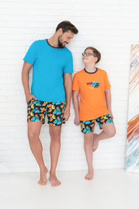 Komiks Piżama chłopięca krótki rękaw, spodnie Italian Fashion - pomarańczowy/druk