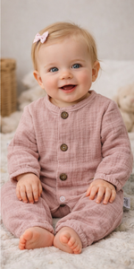 Pajac muślinowy Just Muslin 02235BSR Makoma rose– lekki, oddychający, 100% bawełna