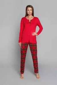 Zorza piżama damska długi rękaw, spodnie Italian Fashion - czerwony/druk