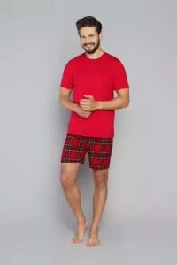 Narwik Piżama Męska krótki rękaw, spodenki Italian Fashion- czerwony/druk